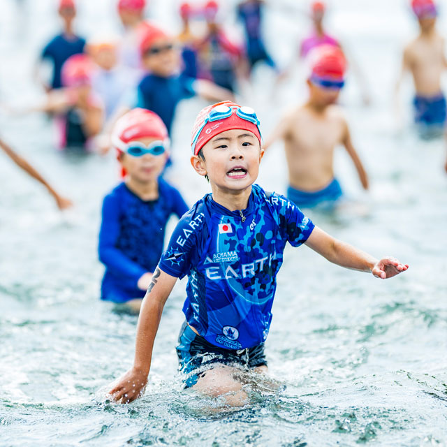 大会前日に、親子いっしょに海での泳ぎ方が学べる教室を無料開催(事前予約制)。